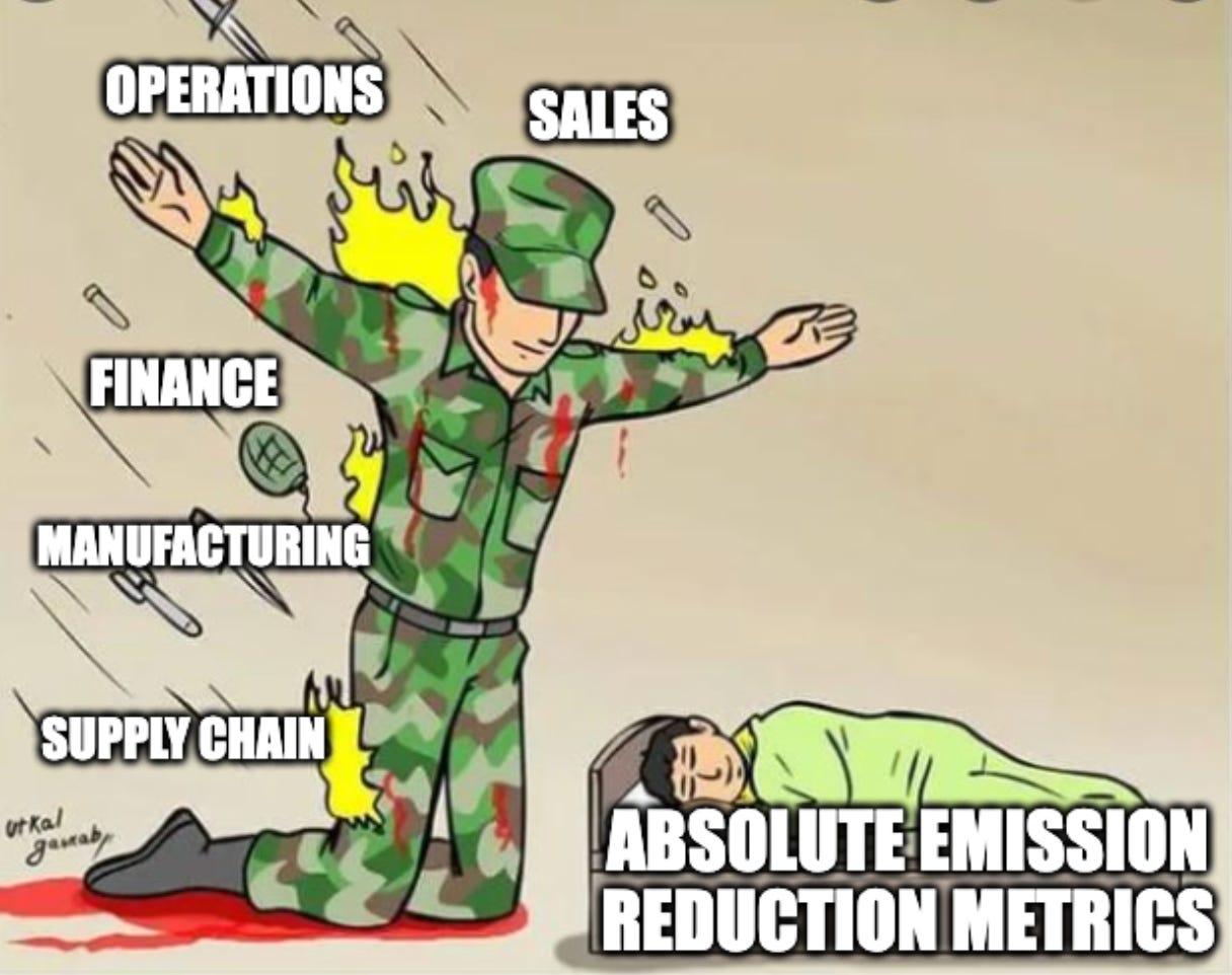 Your expert allies often become your strongest advocates, both from their technical knowledge and their direct C-suite reporting lines. Communications teams who represent the company at industry forums cannot afford to defend weak intensity metrics when the whole world accused intensity metrics as greenwashing. Legal and finance departments who track domestic and regional policy developments recognize that absolute emission tracking creates verifiable evidence for future carbon compliance requirements, transforming potential future costs into present competitive advantages.